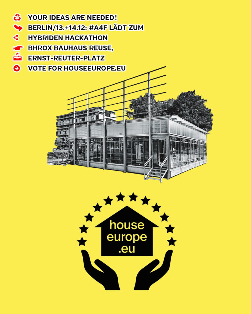 Wo — Die Teilnahme ist vor Ort im (manchen von der Triennale der Moderne her bekannten) BHROX bauhaus reuse auf der Mittelinsel des Ernst-Reuter-Platz oder auch digital und remote möglich: https://www.architects4future.de/termine/houseeurope-hackathon-2